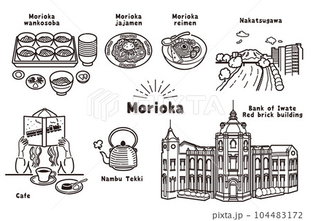手描き風 盛岡のイラスト(線画)
