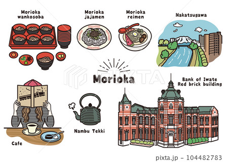 手描き風 盛岡のイラスト(カラー)