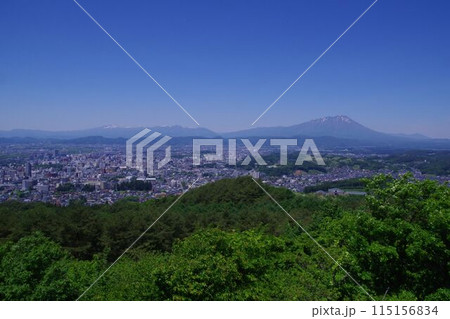 盛岡の風景 盛岡の岩山展望台から岩手山と盛岡市街地
