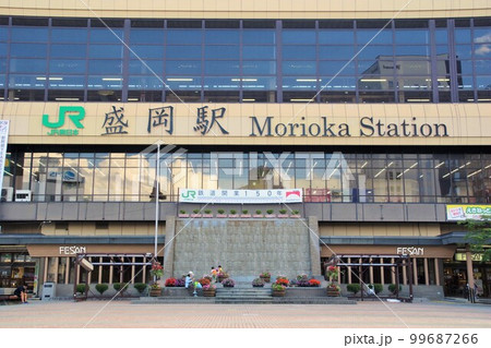 盛岡の街並み JR盛岡駅と看板