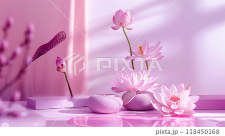 池に浮かぶピンクの睡蓮をイメージしたイラスト