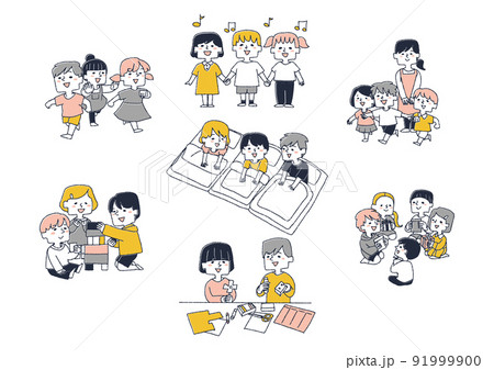 保育園での楽しい遊び 伸び伸びと過ごすこども達のセット