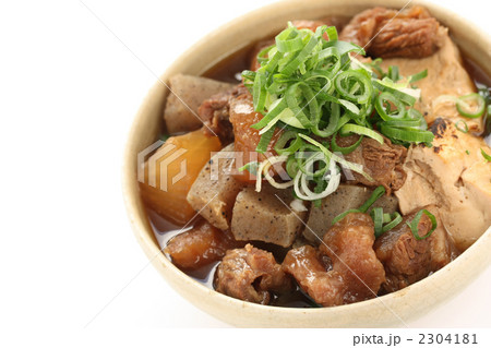 牛スジの煮込み どて焼 すじこん アップ 白背景