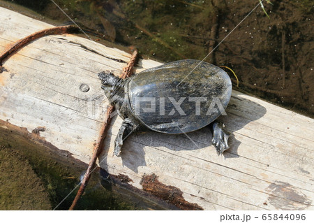生き物 爬虫類 スッポン、公園の池で日光浴。よっぽど気持ちがいいのか近づいても逃げませんでした