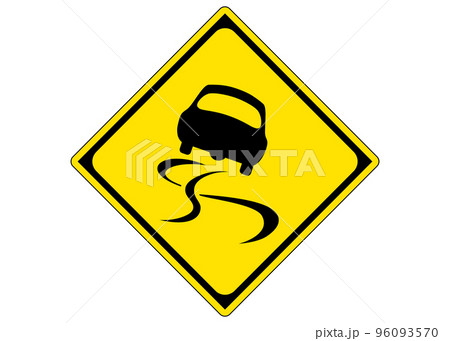 警戒標識 すべりやすい 道路標識の看板のイラスト ピクトグラム