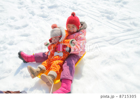 そりで遊ぶ姉妹