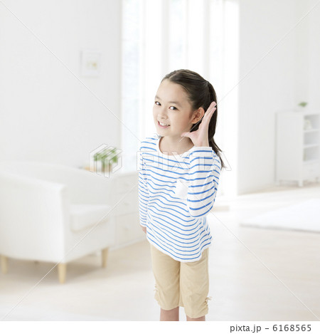 耳をすます小学生の女の子