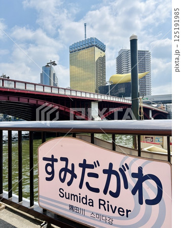 浅草 吾妻橋から東京スカイツリーとアサヒビールタワーの風景
