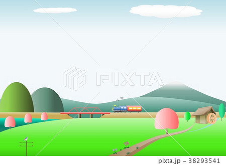 田舎の風景桜機関車