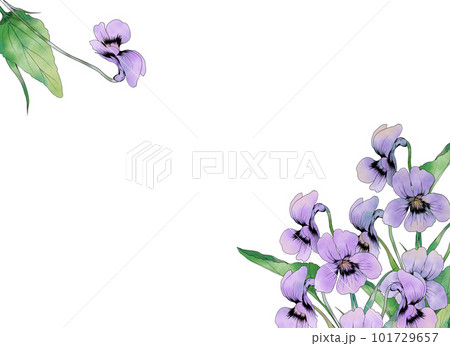 春らしいかわいい スミレの花のボーダー 水彩風 ベクターイラスト レーション