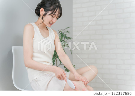 かかと・足裏にヤスリをかける乾燥に悩むアジア人女性