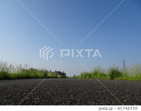 地面すれすれから見た散歩道と空