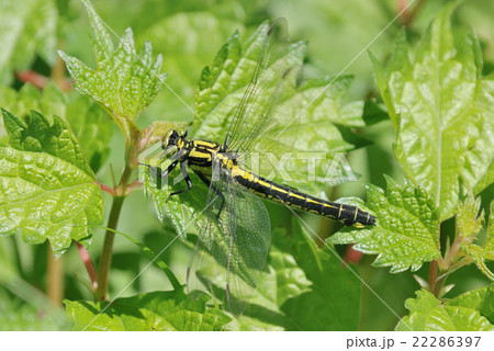 生き物 昆虫 アオヤンマ、池の近くに生えた木の梢に止まって交尾中