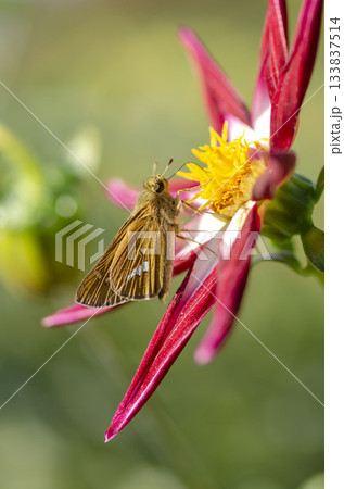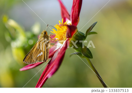百日草の蜜を吸うセセリチョウ