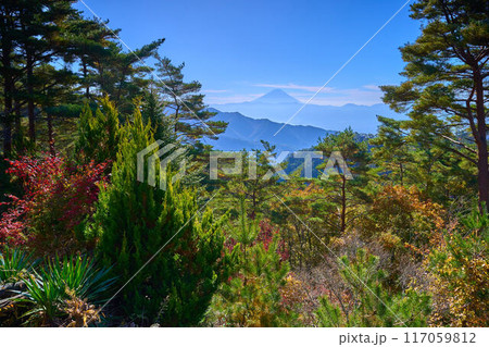 秋の山梨県甲府市昇仙峡のロープウェイ山頂駅にある浮富士広場から南側の眺望