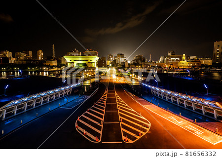 横浜港大さん橋国際客船ターミナルの夜景、飛鳥II