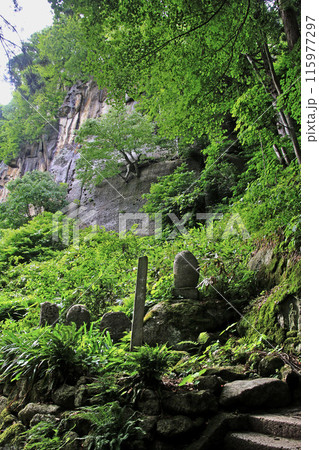 夏の山寺の風景 立石寺 せみ塚 山形県山形市