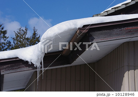雪と雨どい 雪のせり出しと雨どい
