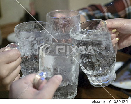 沖縄の居酒屋で泡盛のジョッキで乾杯をする