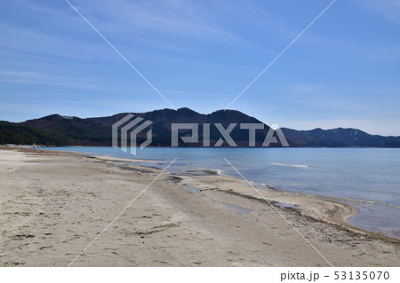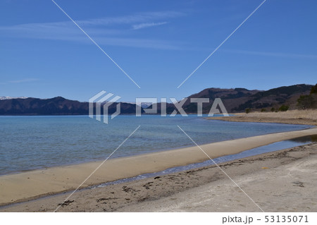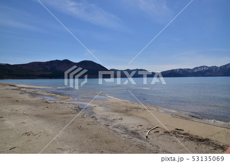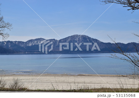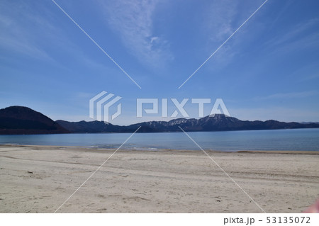御座神社の鳥居と雄大な田沢湖の眺め 秋田県仙北市