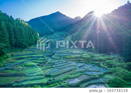 【愛知県】田植えが終わった四谷の千枚田・日の出