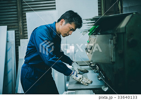 シャーリングで作業をする男性作業員 製造業 せん断機