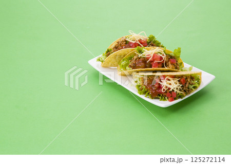 フレッシュな野菜たっぷりのタコス