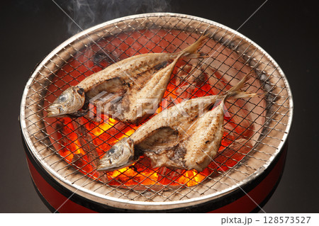 炭火でじっくり焼き上げる真あじの一夜干し