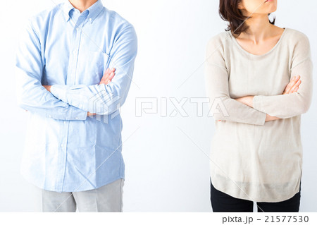 腕組みをしてそっぽを向く 男性と女性 喧嘩する夫婦 男の人 女の人 ポートレート バコピースペース