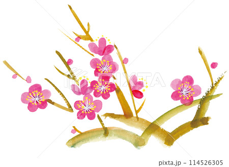 梅の手描きイラスト3-1 筆描き年賀素材 墨絵