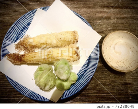 小料理屋さんのそら豆とヤングコーンの天ぷら 写真素材