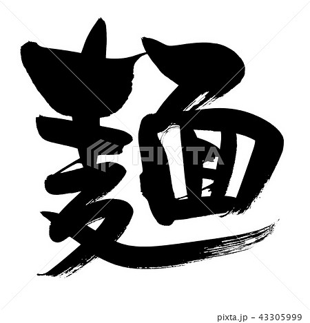筆文字素材の手書きの【麺】墨で書いためん類のイラスト文字[略字体]