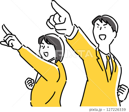力強く指差す男女の会社員