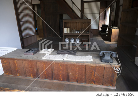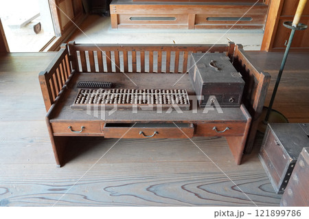 風景古民家写真 町家の座敷 引き出しと階段と ひな壇のような引き出し 商家の座敷 商談の場