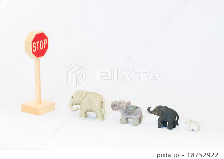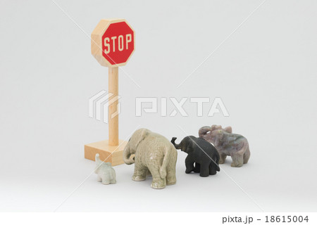 交通標識とゾウの置物