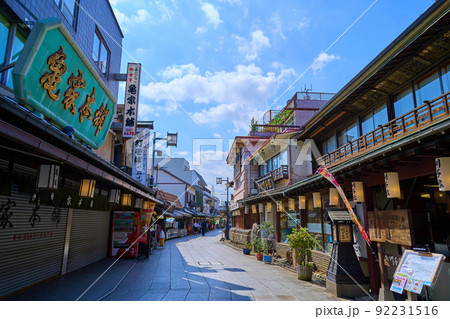 東京都葛飾区柴又の帝釈天参道の(柴又駅方面)様子