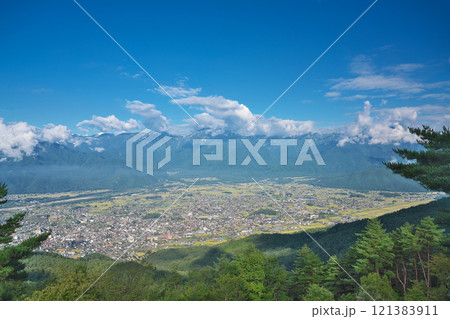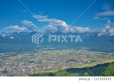 信州 大町近郊 鷹狩山からの大町市街全景