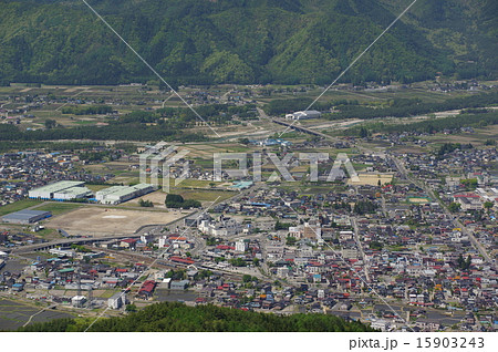 信州 大町近郊 鷹狩山からの大町市街(大町駅・市役所)