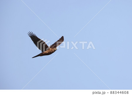 埼玉県比企郡川島町越辺川の白鳥飛来地 青空の上空を舞う、かつてははしたかと呼ばれたタカ科のハイタカ