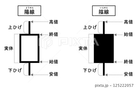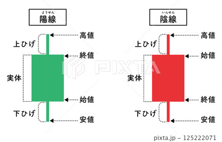 ローソク足のイラスト/陽線(緑)陰線(赤)