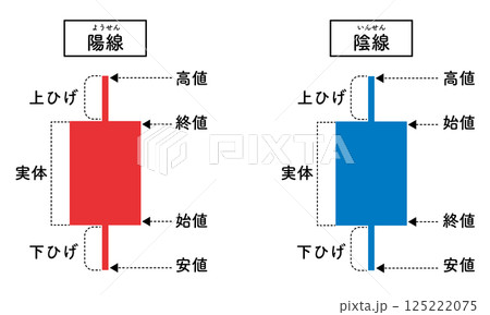 ローソク足のイラスト/陽線(赤)陰線(青)
