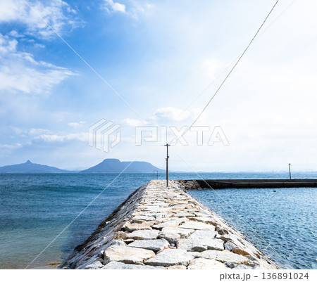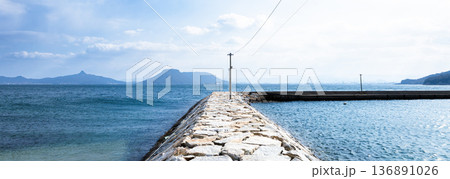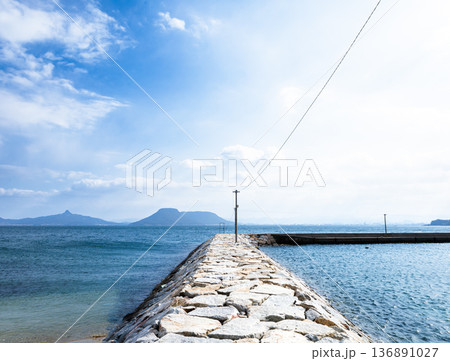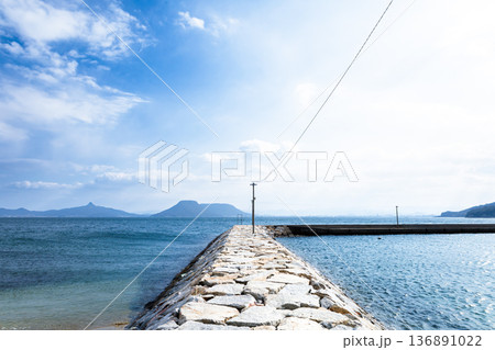 瀬戸内海に浮かぶ香川県男木島の男木漁港の防波堤の風景