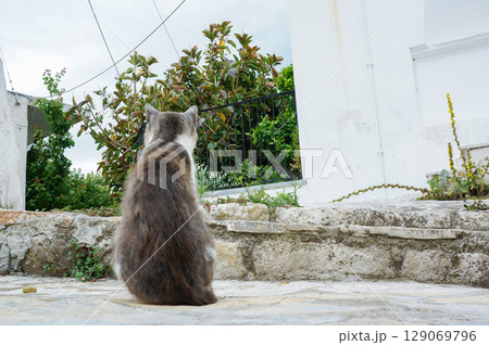バルコニーから散歩中の犬を見ているレトリバー犬の後ろ姿 クレヨン画風 Generative AI