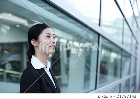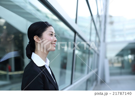 屋外にいるアジア人女性の横顔(悲しい, ぼんやり, 呆然)