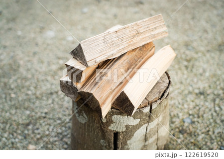 細かく割った薪