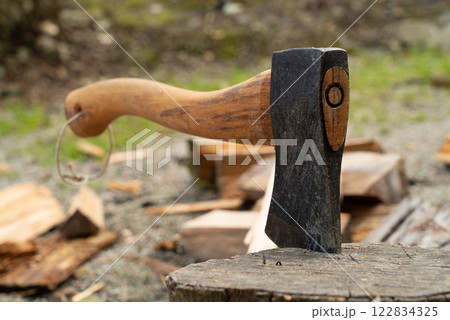 薪割り台に刺さった手斧