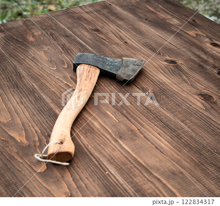 テーブルの上に乗った手斧