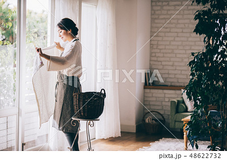 家族 親子 家事 洗濯 ファミリー 女性 リビング
