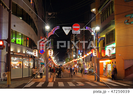 提灯がぶら下がる宮崎西橘通り歓楽街の町並み