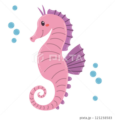 Cute cartoon sea horse in flat style isolated on white background. Cheerful small marine bony fish.